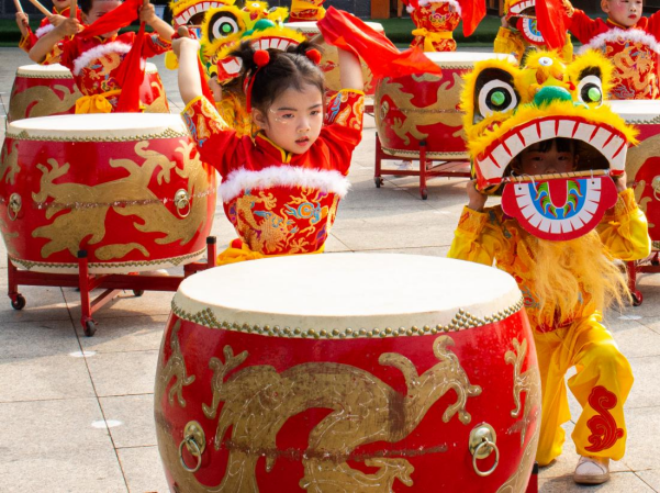 总攻男男双性高H浪荡小说爱心幼儿园的孩子们表演打鼓、舞狮 (朱泽雅 摄)