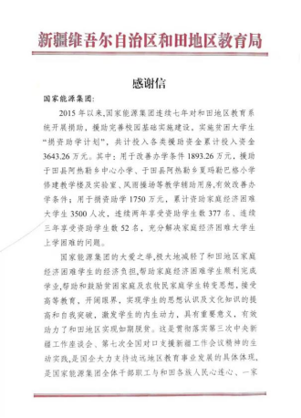 2021年年关岁尾,一封来自新疆和田地区教育局的感谢信,让基金会备受鼓舞。