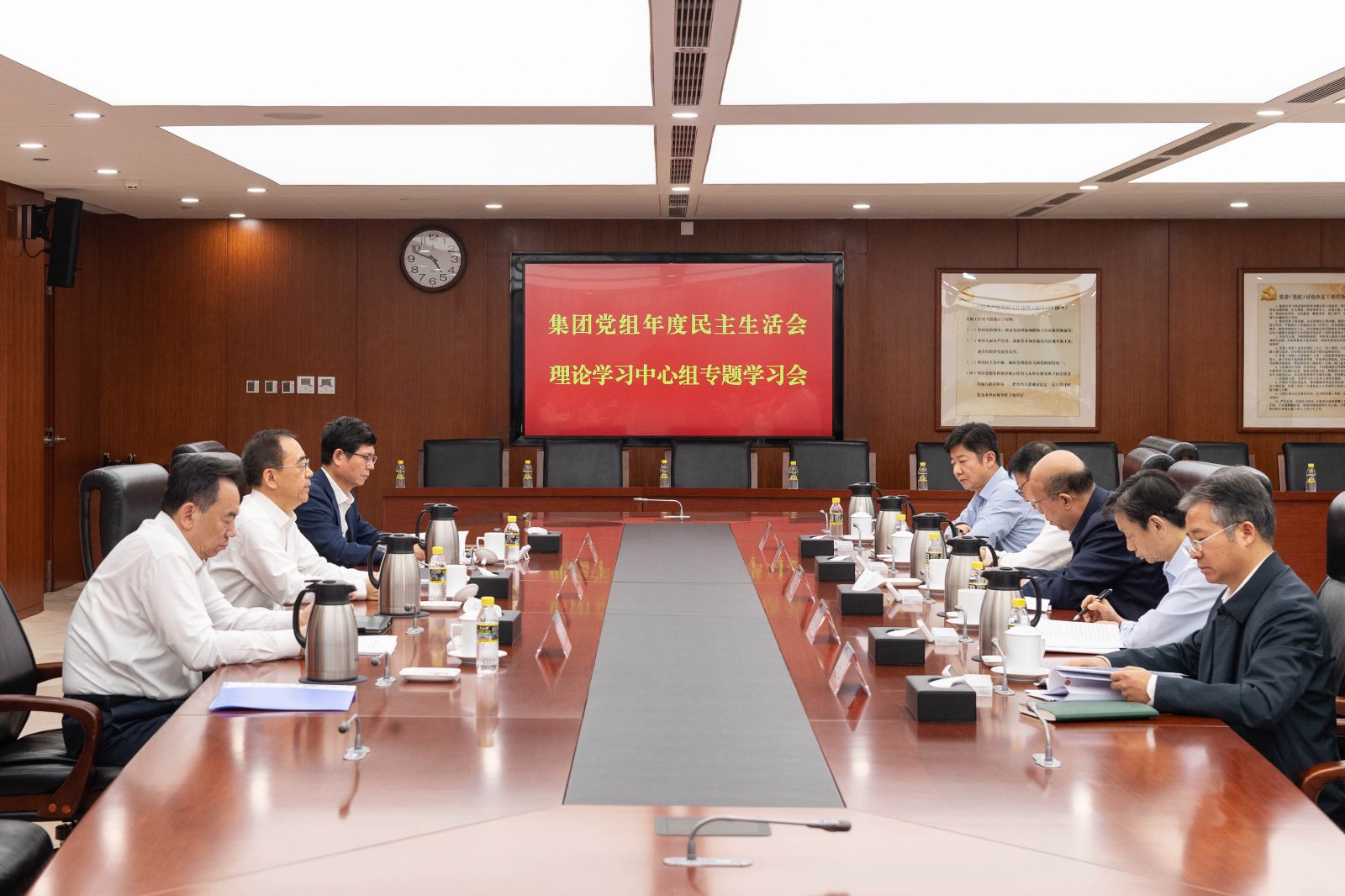 会议深入学习了习近平总书记关于党的建设、党的自我革命的一系列重要论述,以及在中共中央政治局相关集体学习时关于健全全面从严治党体系、推进自我革命的重要讲话精神。会议指出,习近平总书记的重要讲话为纵深推进全面从严治党、加强各级领导班子建设提供了根本遵循。集团党组要自觉向党中央对标看齐,深刻把握民主生活会目标要求,高质量、高标准做好会议筹备工作。