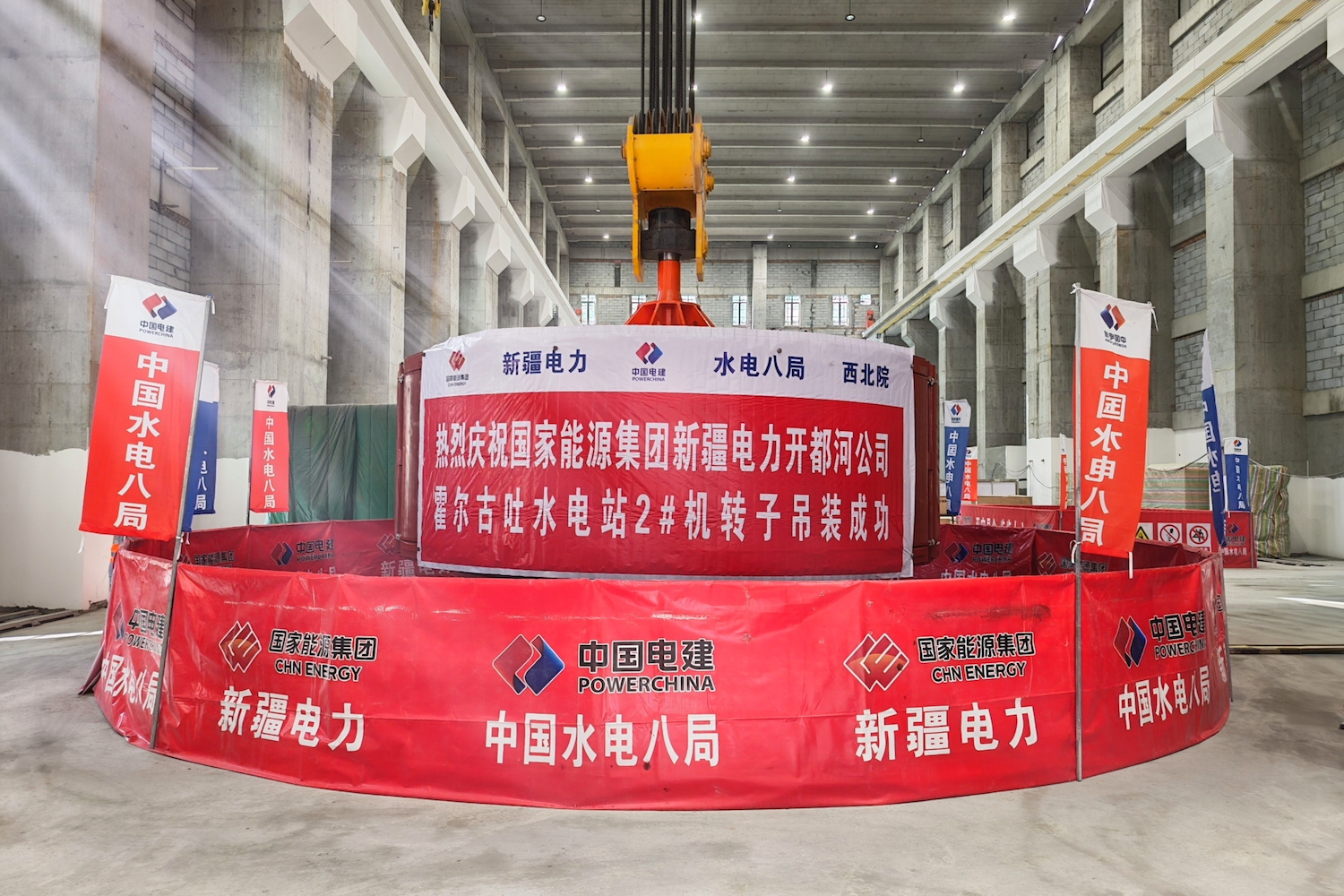 3月16日,新疆电力开都河公司霍尔古吐水电站第二台机组转子吊装成功,与水轮机主轴实现精准对接,为电站后续全面安装、调试及投产发电奠定坚实基础。