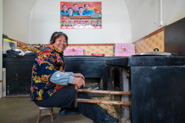杨家沟村雷兴芳老人的六孔窑洞整齐干净,走进其中一孔窑洞,灶火烧得正旺,屋里暖烘烘的。老人坐在灶火前,一手慢悠悠拉着风箱,另一只手不自觉地摩挲着衣角,声音里裹着藏不住的欢喜:“那些‘蓝板板’又挣钱了,村里又给我们分红了!”她伸出指头掐着算:“咱家八口人,一人400元,这就是3200元。还给每人交了400元的合作医疗费,这又是3200元……”算到尽兴处,她的嘴角咧得更大了,眼角的皱纹挤成了一团,连声音都洪亮了几分。