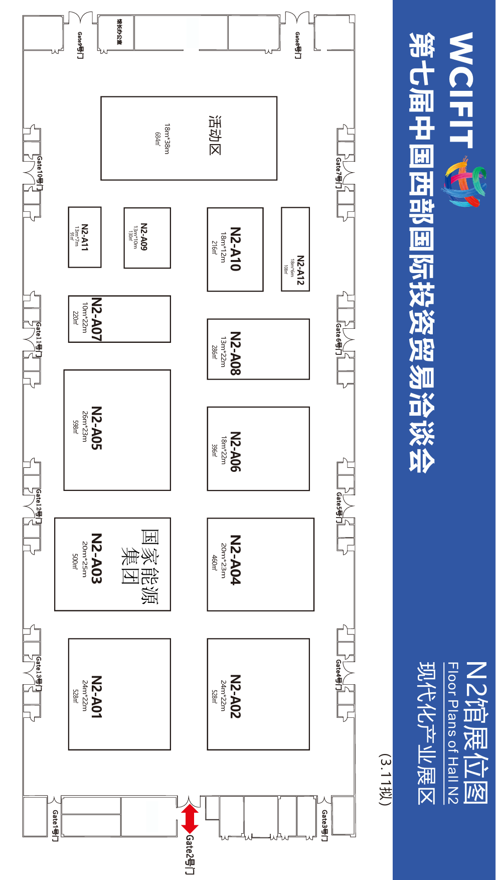 (二)展位情况:暂定参展展位位重庆国际博览中心于N2馆,面积500㎡,展厅限高6米,不可吊装。由于展位规划暂未最终确定,设计时需考虑后续调整可能性,需便于调整。